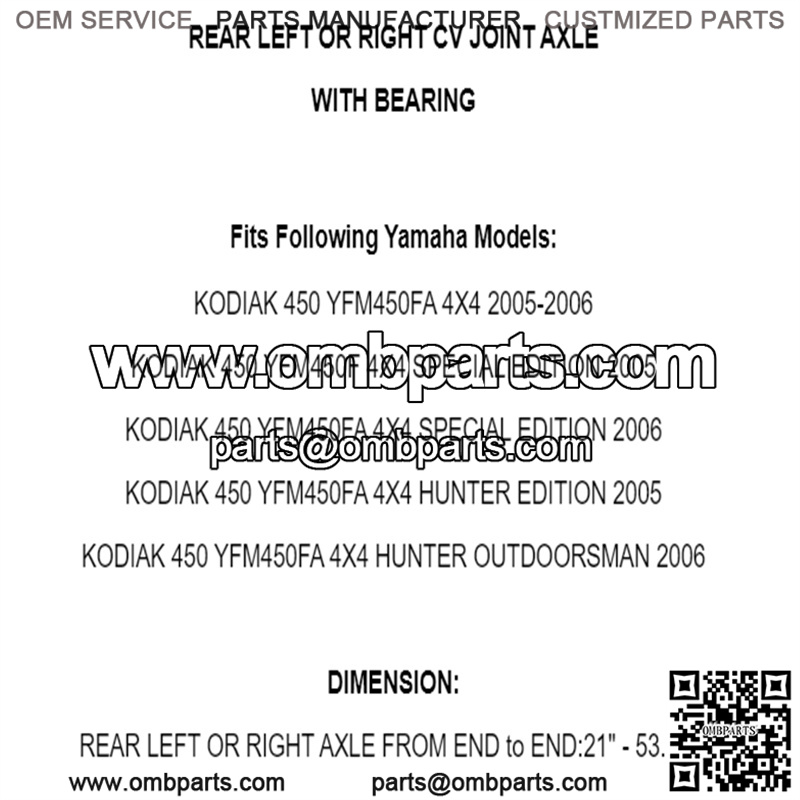 Rear Left Right CV Joint Axle W/Bearing For Yamaha Kodiak 450 YFM450FA 4X4 05-06