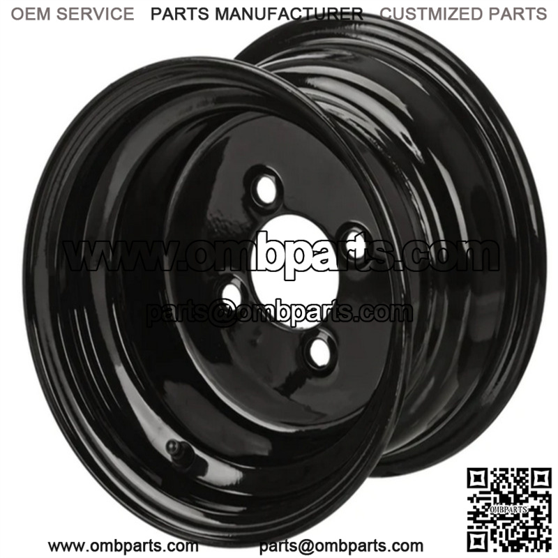 10″ Glossy Black Steel Golf Cart Wheel Wheel Dimensions: 10X7 with 4×4 bolt pattern and 3+4 offset Lug Nuts Sold Separately