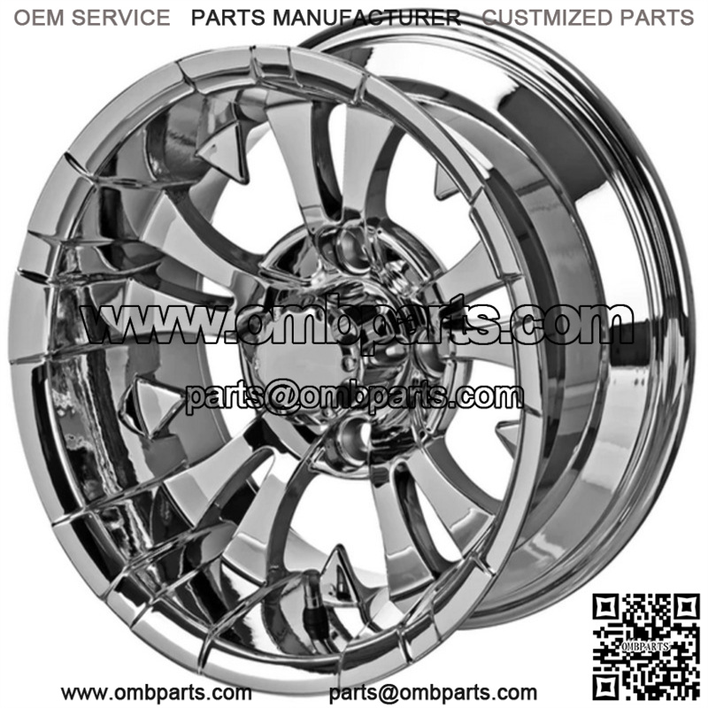 10″ Warlock Mirror Golf Cart Wheel Center Cap included Wheel Dimensions: 10X7 with 4×4 bolt pattern and 3+4 offset Lug Nuts sold separately