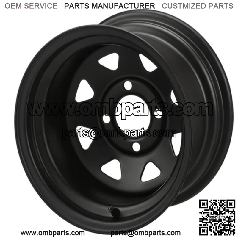 12″ Black Steel Golf Cart Wheel Wheel Dimensions: 12X7 with 4×4 bolt pattern and 2+5 offset Lug Nuts Sold Separately
