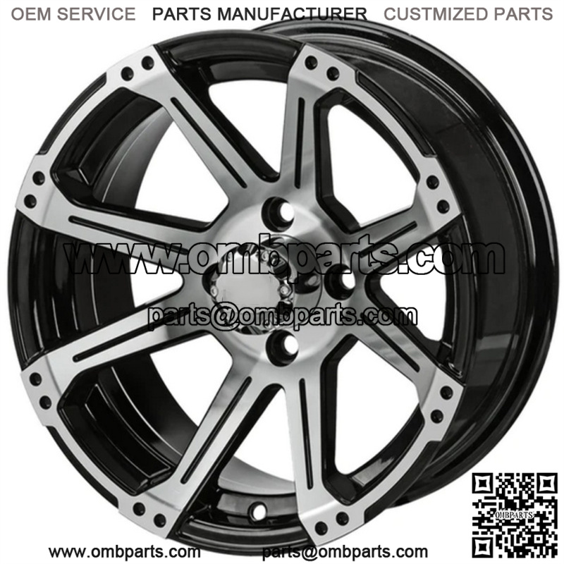 12″ Rampage Black & Machined Golf Cart Wheel Center Cap included Wheel Dimensions: 12X7 with 4×4 bolt pattern and 3+4 offset Lug Nuts sold separately