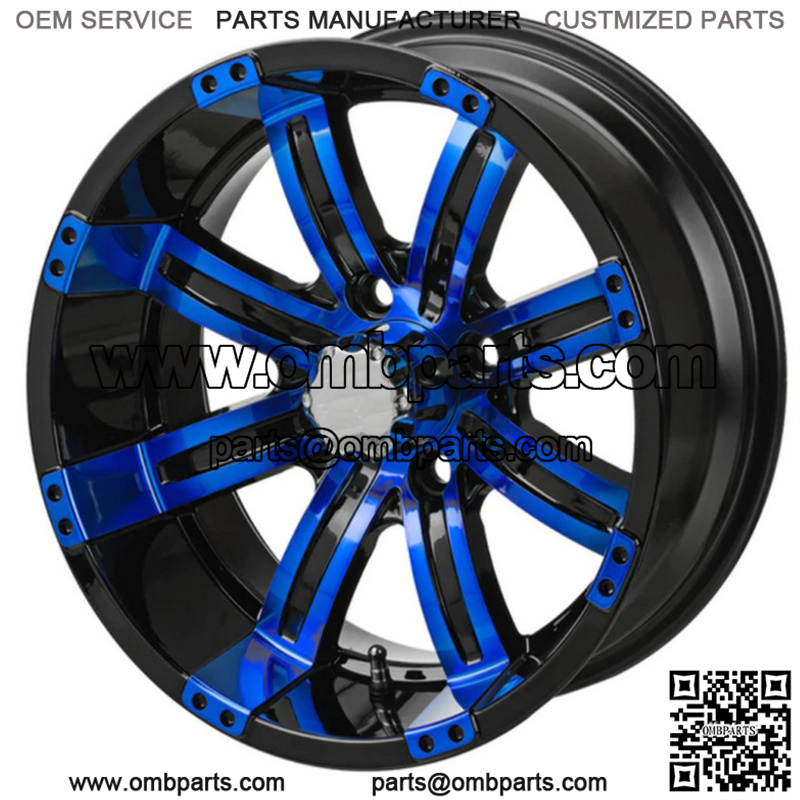14″ Casino Black & Blue Golf Cart Wheel Center Cap included Wheel Dimensions: 14X7 with 4×4 bolt pattern and 3+4 offset Lug Nuts sold separately