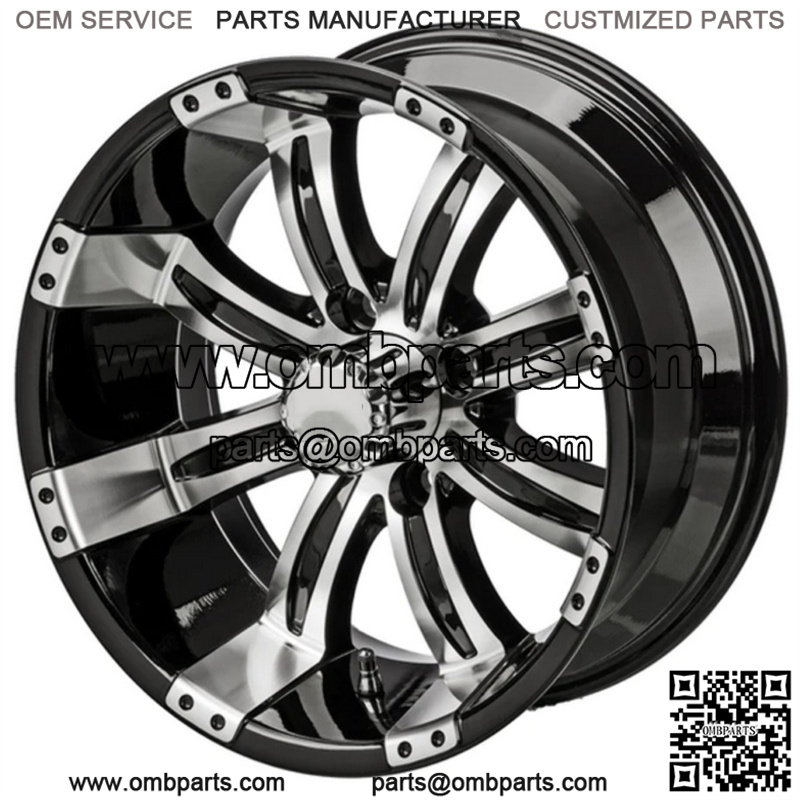 15″ Casino Black & Machined Golf Cart Wheel Center Cap included Wheel Dimensions: 15X7 with 4×4 bolt pattern and 3+4 offset Lug Nuts sold separately