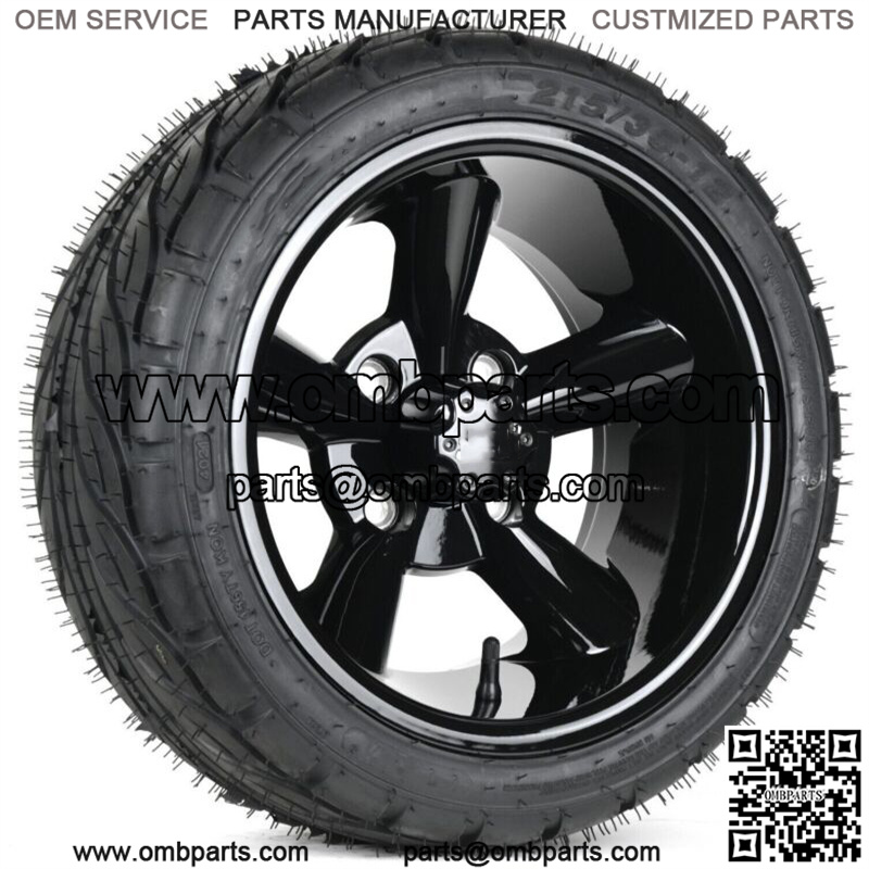Set of 4 12" Gloss Black 5 Spoke Golf Cart Wheels & 215/35-12 Tires DOT