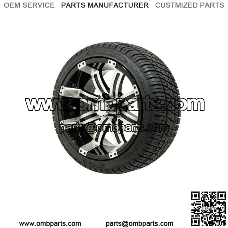 Set of 4 14″ Black/Machined Golf Cart Wheels & 205/30-14 (18″) Tires