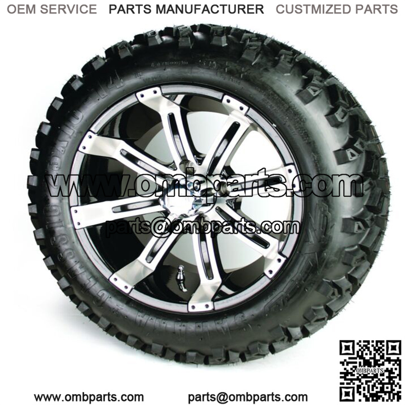 Set of 4 - 14 inch Black/Silver Wheels & 23 inch A/T Golf Cart Tires