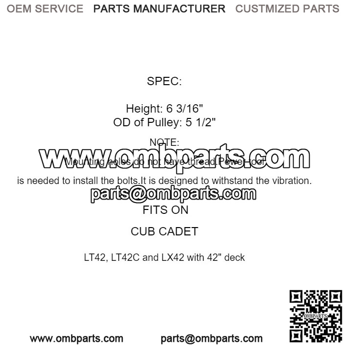 756-3096 Deck Spindle Pulley For MTD Cub Cadet 19A40013 19A40014 19B40013