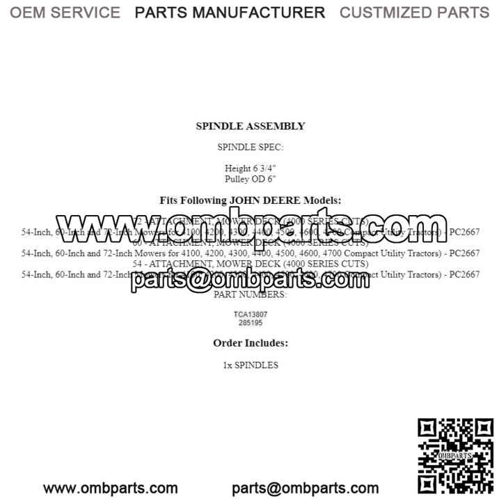 Spindle Assembly for John Deere 4500 4600 4700 with 54 60 or 72″ Deck TCA13807