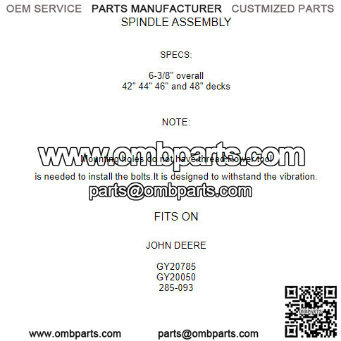 Spindle Assembly for John Deere Gy20785 Gy20050 285-093 42″ 44″ 46″ 48″ Deck