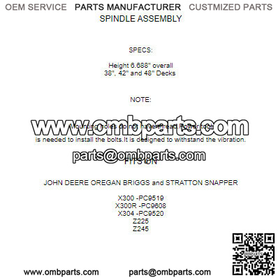 Spindle Assembly for John Deere X300 X304 SN UP-050000 Z225 Z245 SN UP – 080000