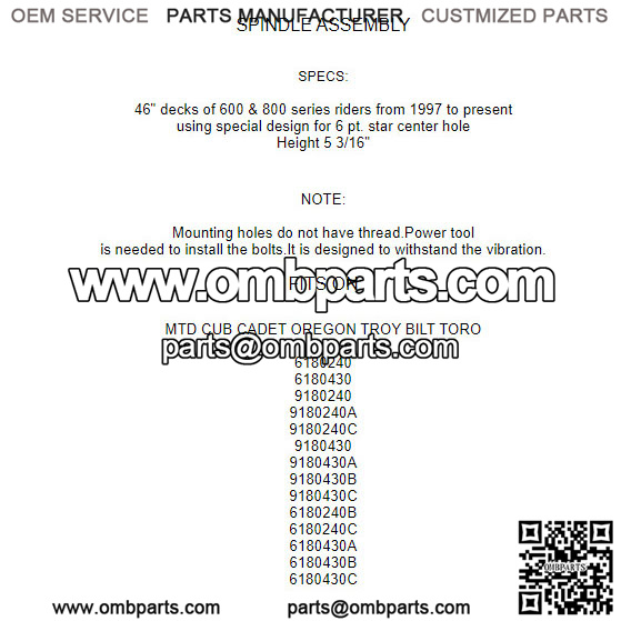Spindle Assembly for MTD Cub Cadet 618-0240 918-0240 618-0430 918-0430 A B C