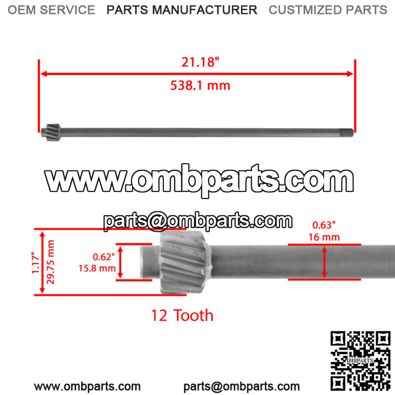 Shaft Spec: 5/8″ diameter21.18″ length12 tooth