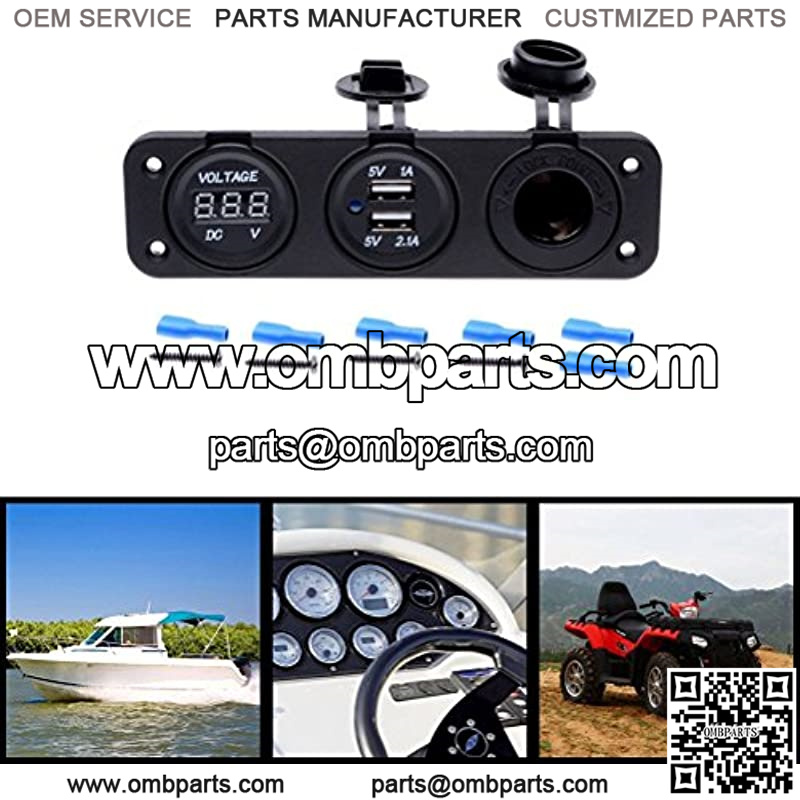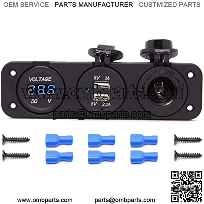 Package includes: 1x Cigarette Lighter Socket + 1x Blue LED Voltmeter + 1x Dual USB Charger+6 x Insulated Terminals+4 x Screws