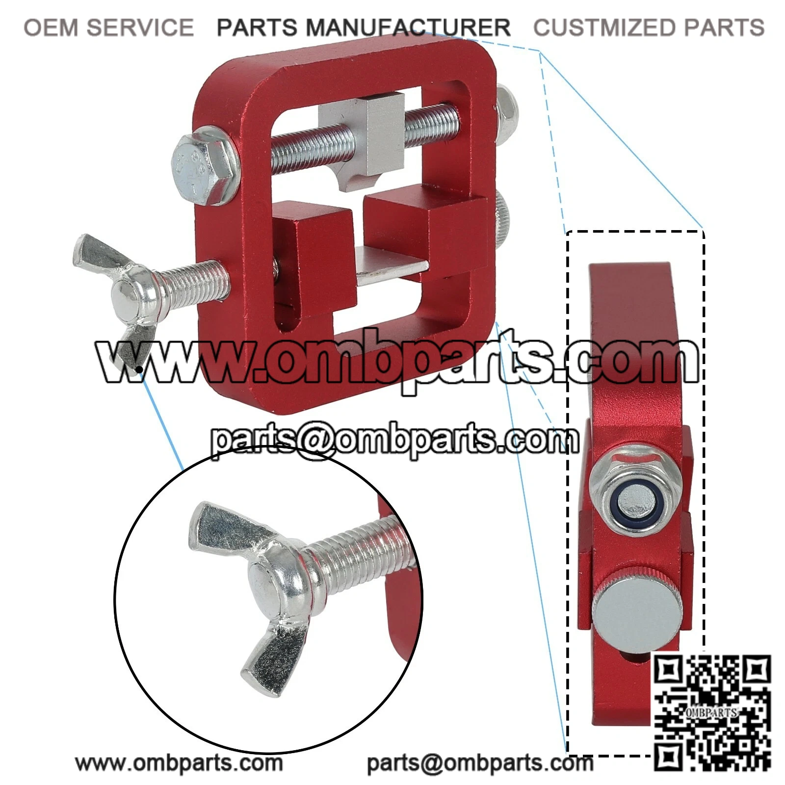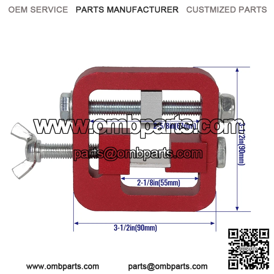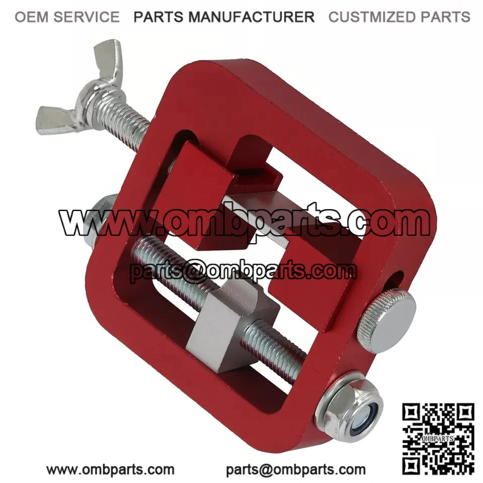 The adjustable side and top clamps secure the slide in place, side witness windows on both sides of the tool frame to check for the proper sight and pusher block alignment.