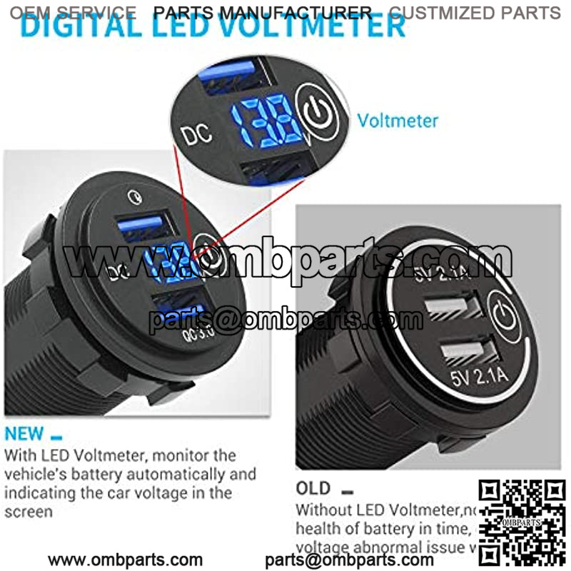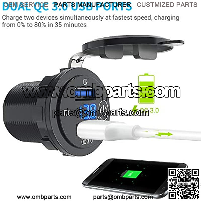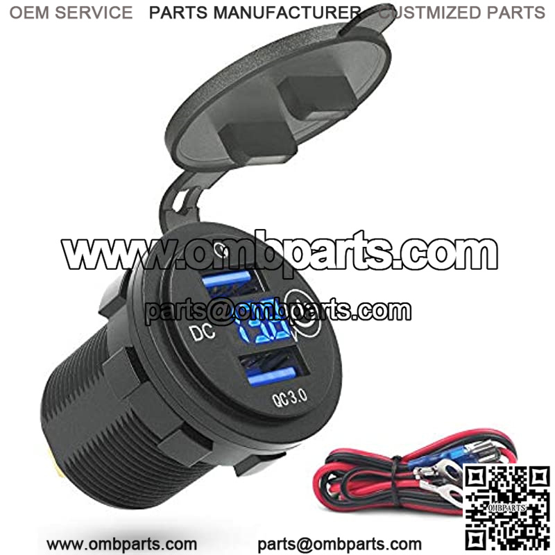 Upgraded Quick Fast Charge 3.0 Dual USB Charger Socket Power Outlet with LED Digital Voltmeter and Touch Switch for 12V/24V Car Truck Golf Cart Boat Marine Motorcycle RV and More