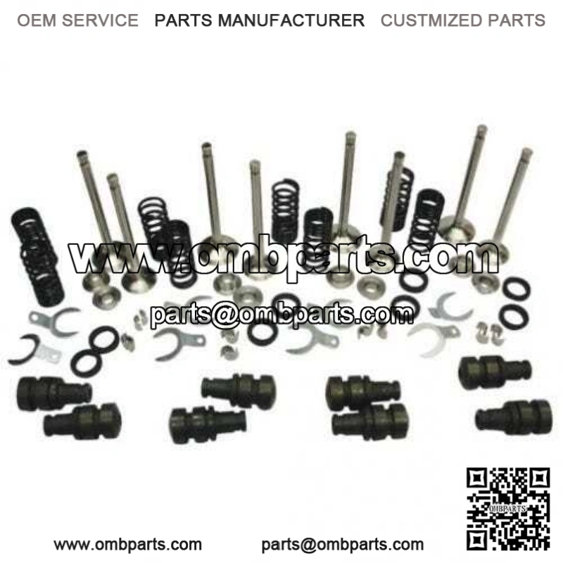 Kit includes: Intake and exhaust valves, valve spring retainers, valve guide seals, valve guide retainers, valve springs, valve guides and valve keepers